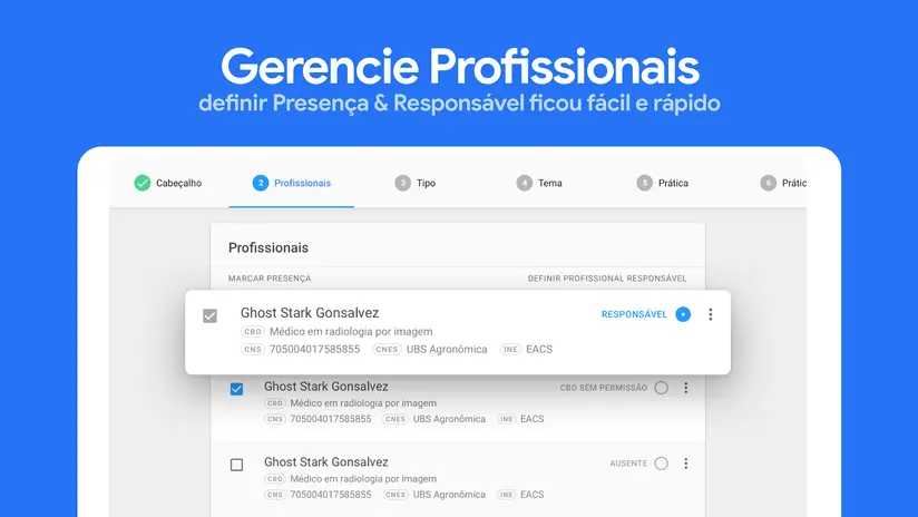 As informações de profissionais e cidadãos da UBS de referência são importadas para o aplicativo, facilitando o trabalho.