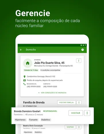 Com o aplicativo é possível registrar características socio sanitárias e sociodemográficas dos domicílios, problemas e condições de saúde dos usuários no território das equipes de Atenção Primária bem como o registro das visitas realizadas aos domicílios. O app também permite a cada UBS controlar as áreas de sua responsabilidade, agindo na conscientização e prevenção de doenças e endemias, além do acompanhamento das condições de saúde dos cidadãos.